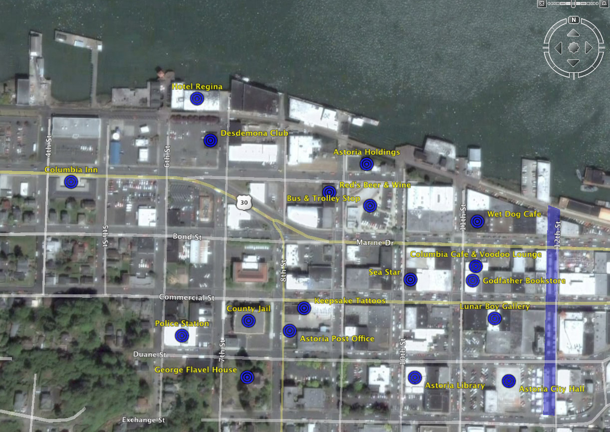 - Bus & Trolley Stop, where the Historic Astoria Trolley makes its major stop; it also serves as Old Town's main Greyhound stop.