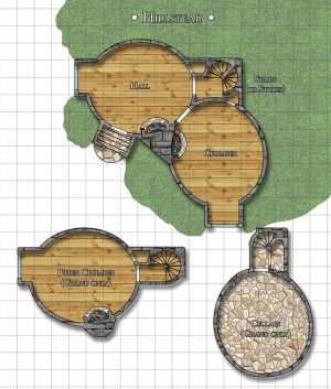 - Grander hillsteads have two additional chambers: the first a cellar beneath the main level of the hall, and the other a third chamber set above the hall, often with its own separate entryway higher up on the hill's side. These are typically for either larger families (in which case the upper chamber is a second sleeping space), or for those with grander means (in which case the main-level second chamber is used as a kitchens).